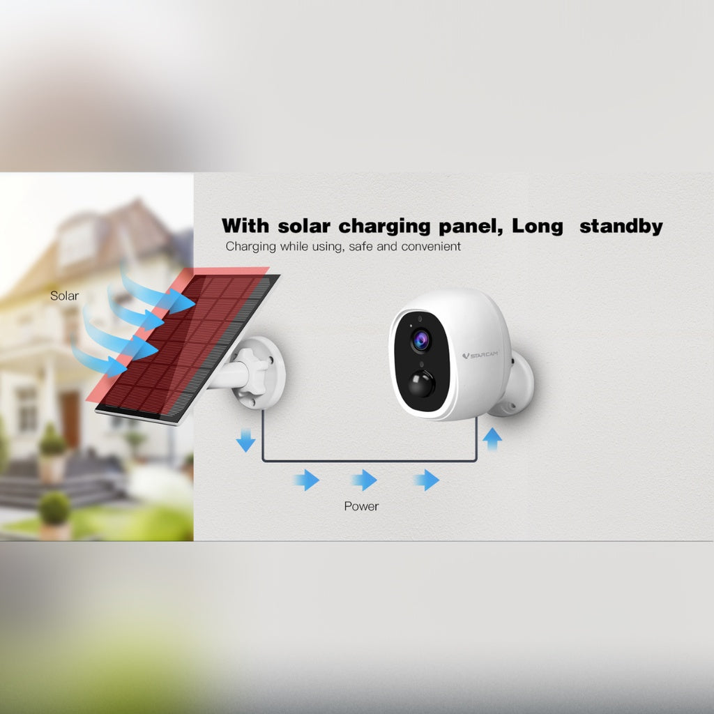 The VStarcam CB53 is an outdoor camera with dual 2500mAh batteries, it supports a continuous operation of 19 hours. Based on motion activation of less than 10 times and total viewing of live or recorded video of less than 30 mins/day, the CB53 supports max 30 days operation between recharge. If you would like it to last longer, an optional solar panel can be installed to recharge the camera.